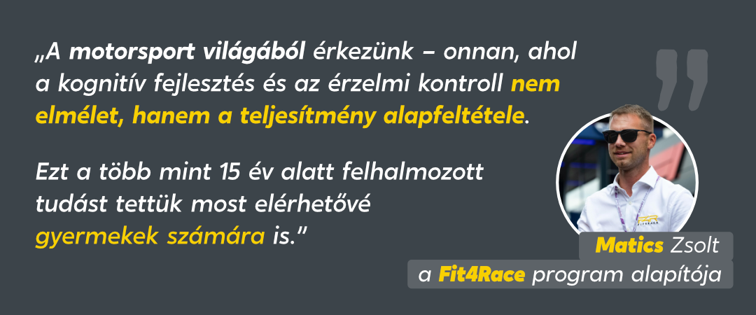 A Fit4Race új, a gyermekek kognitív fejlesztésére irányuló programot indít, melynek célja, hogy a gyermek ellenállóbbá váljon a hétköznapi kihívások okozta stresszel szemben, kezelni tudja a hibákat, és kudarcokat, valamint magabiztosabban boldoguljanak az iskolai és hétköznapi helyzetekben..